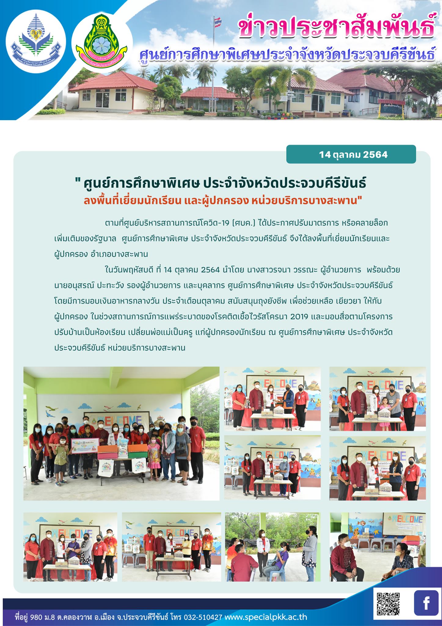 ศูนย์การศึกษาพิเศษ ประจำจังหวัดประจวบคีรีขันธ์ลงพื้นที่เยี่ยมนักเรียน และผู้ปกครองหน่วยบริการบางสะพาน